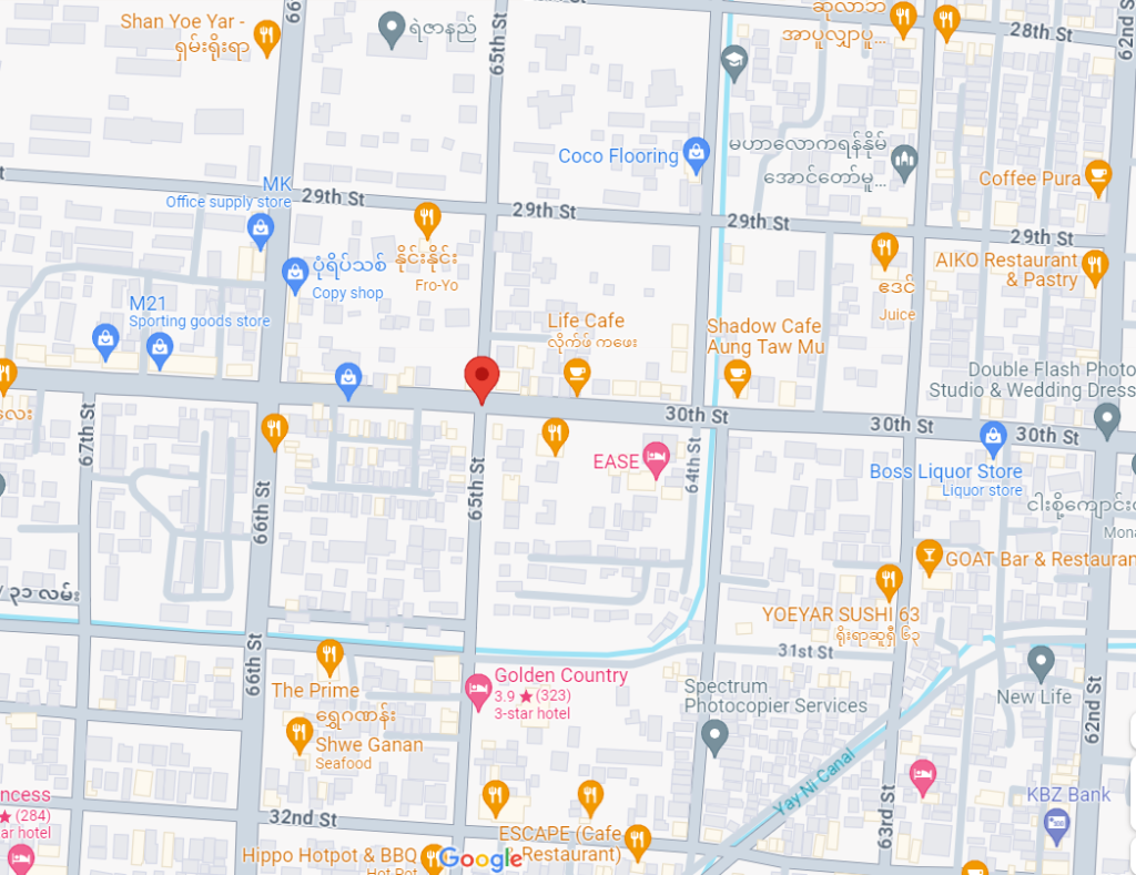 所在地 :No.A-4, 4th Floor, 30th Street, 65th Corner, ChanAye Tharzan Township, Mandalay, Myanmar.